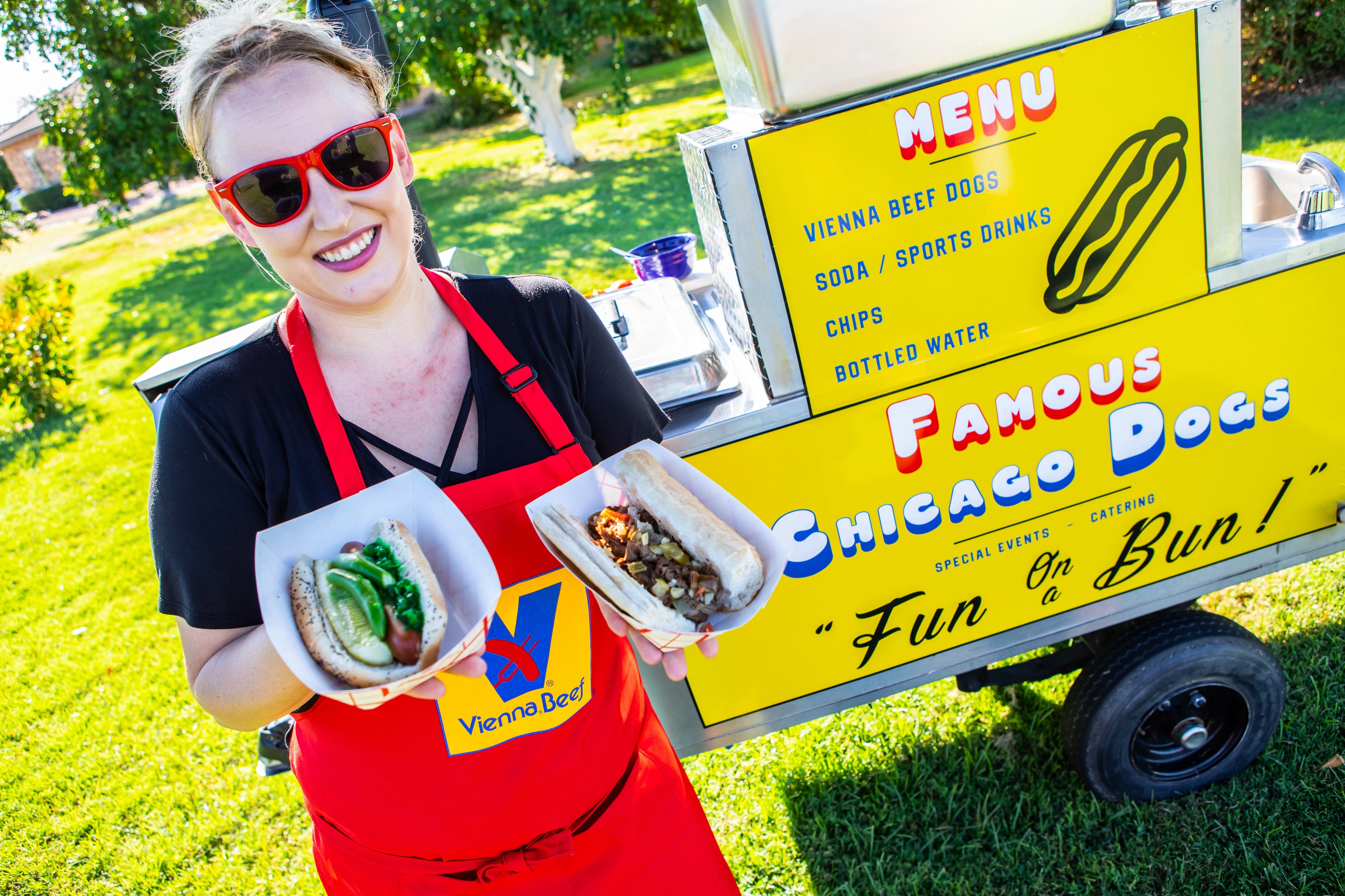 Famous Chicago Dogs brings the iconic taste of Chicago to the Valley! Serving up authentic Vienna Beef hot dogs loaded with classic Windy City toppings, our hot dog cart is a hit at events big and small. Whether you're planning a private party, school event, sports game, festival, or community gathering, we’ll deliver “Fun on a Bun!” right to your location. We proudly serve Mesa, Gilbert, Chandler, and Queen Creek, Arizona, with catering that’s fast, flavorful, and unforgettable. Book us for your next event and treat your guests to a true Chicago-style experience!